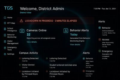 Every school has security cameras, but not every school has intelligent response. TGS™ takes raw footage and turns it into actionable defense—linking behavior, movement, and facial recognition to deliver live alerts that can prevent tragedy, not just record it.